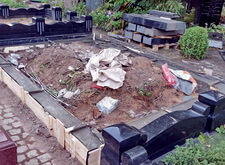 После того, как работа была проведена, клиент посчитал, что в задней части места захоронения требуется дополнительное укрепление. Мы вкрутили пять дополнительных свай, сварили новую сетку и залили ещё одну площадку, которая будет являться основанием для памятников.